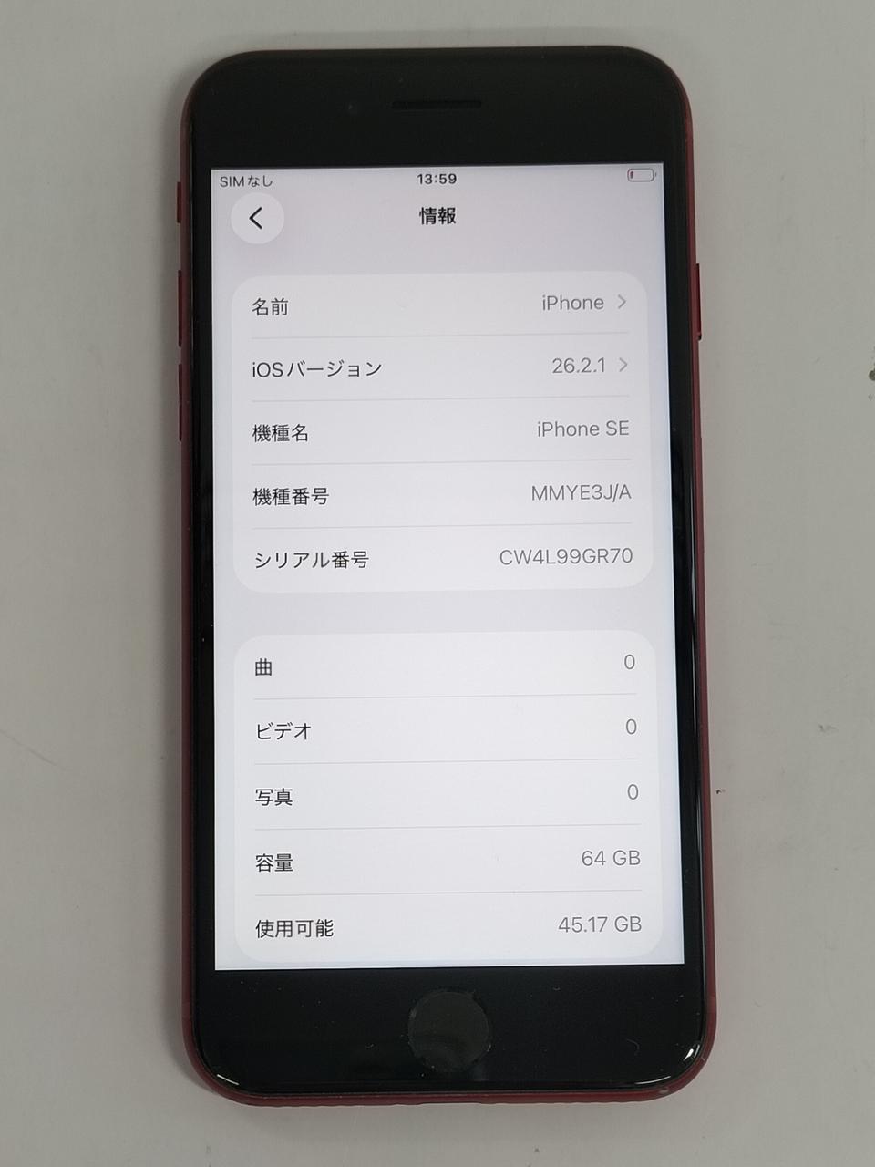 au OS:iOS26.2.1 ROM:64GB 画面サイズ:4.7インチ |