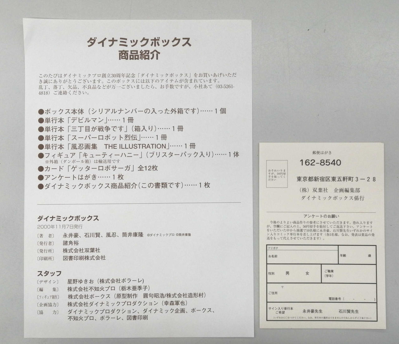 ボックス、デビルマン、スーパーロボット列伝、風忍画集、キューティーハニーフィギュア、ゲッターロボカード12枚 |