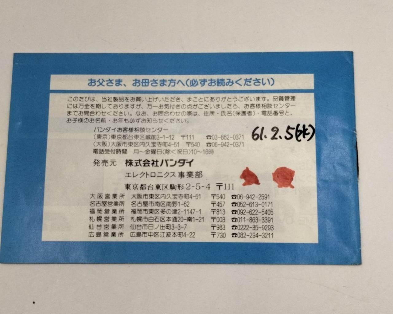箱に少々劣化あります。取扱説明書の裏側に日付の記載あります。