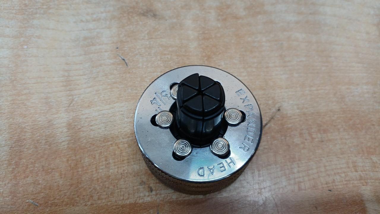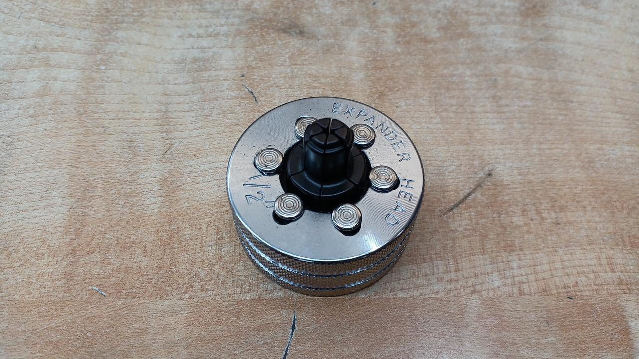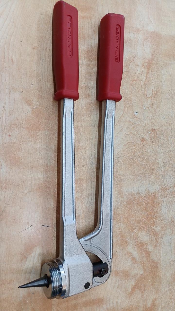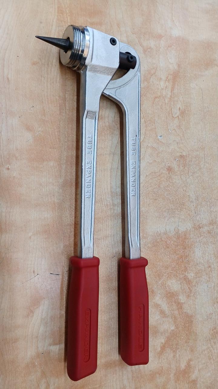 空調設備工事などで銅管の先端を広げる(拡管)ために使用される手動式のエキスパンダーです。溶接接続の際に、ソケットを使わずに銅管同士を接続できるようにします |