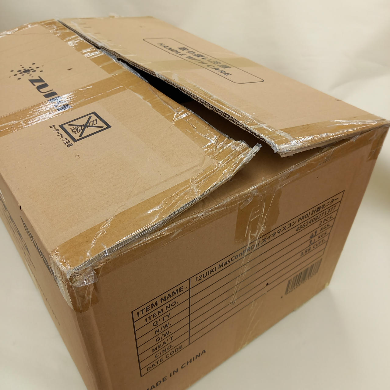 外箱は宅配便の伝票が貼ってあった箇所がべたつきます。 |