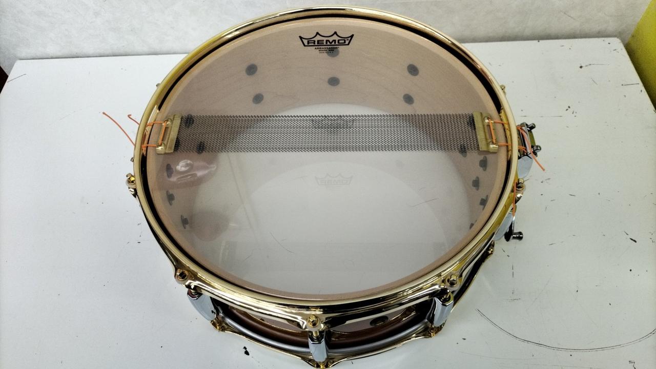 7.5mmという驚異的な厚みのワンピースメイプルにより、ドライでスティックがくいこむような心地よいサウンドを発揮。シェルとスナッピーの響きを巧みに引き出すスペック。深さ5.5インチのモデルはよりセンシティヴなレスポンスを実現しています |
