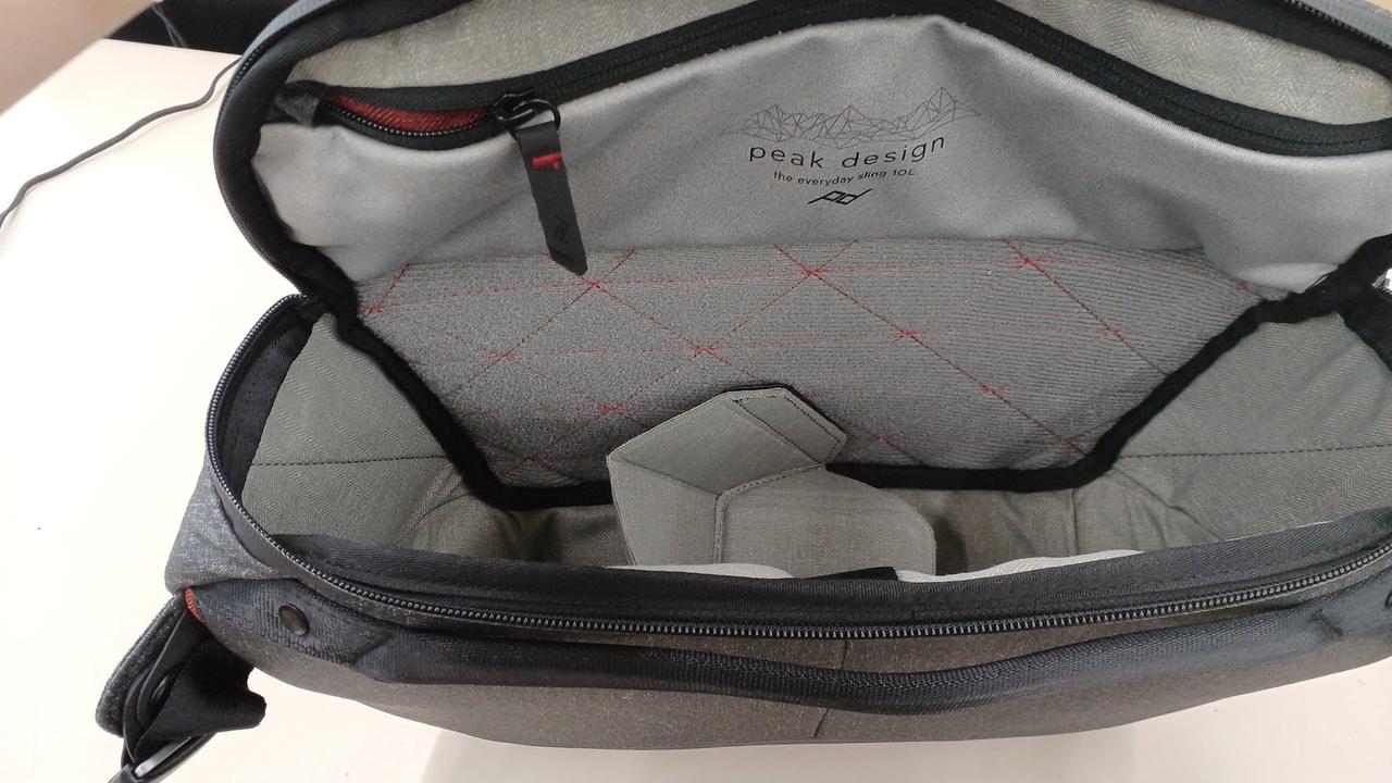 カメラに加えてノートPCや小物も収納できる、機動性と収納力に優れたスリングバッグ |