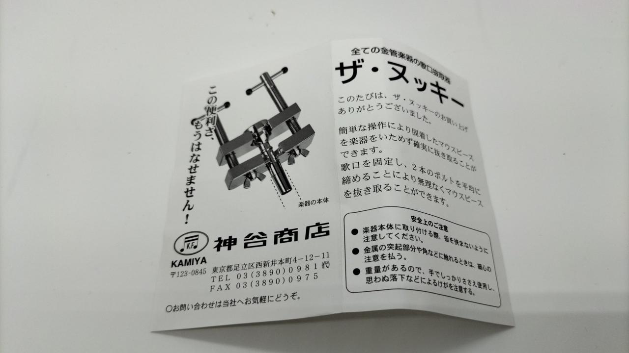 金管楽器のマウスピースが抜けなくなったときに使用する抜き取り器 |
