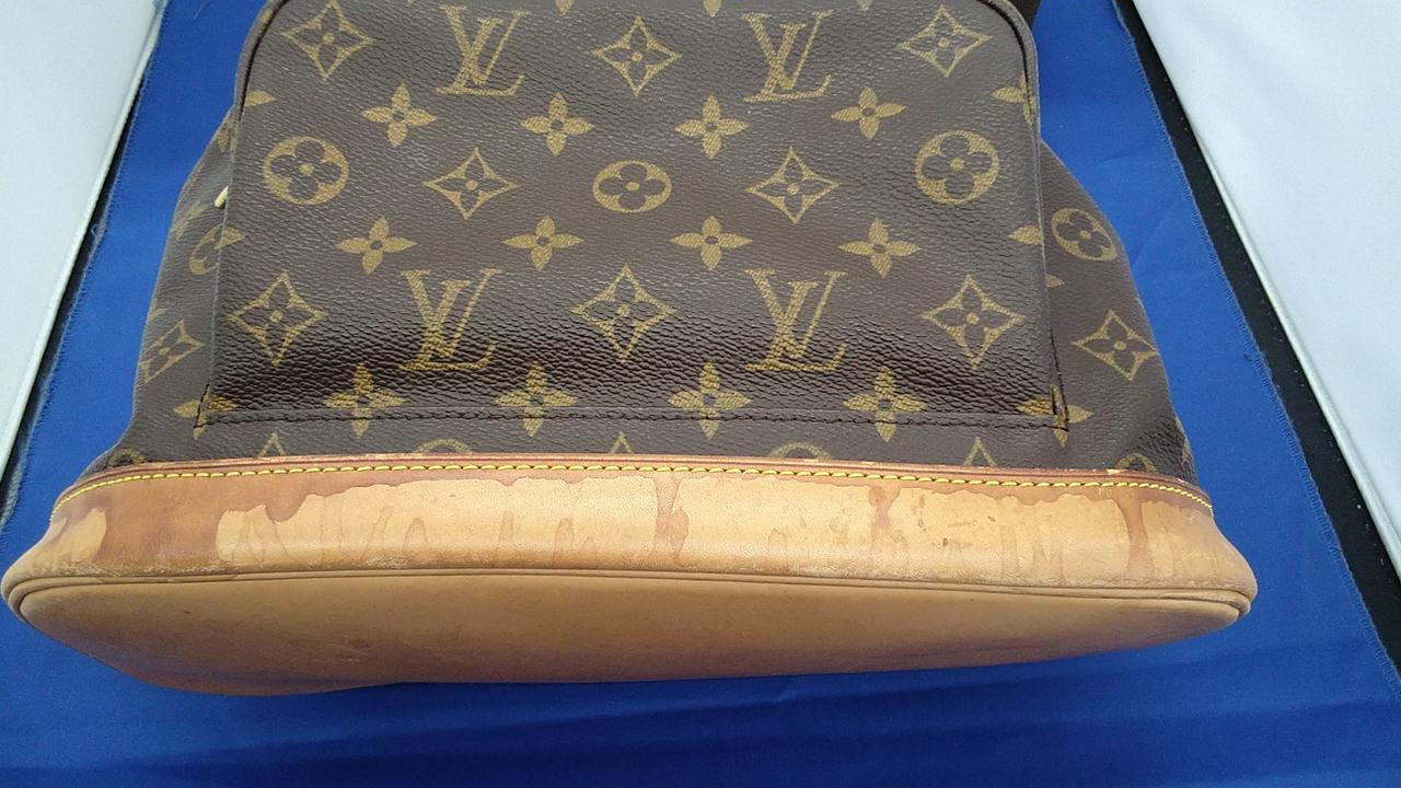 ヌメ革部分シミ、われ、内側生地シミなどあります |