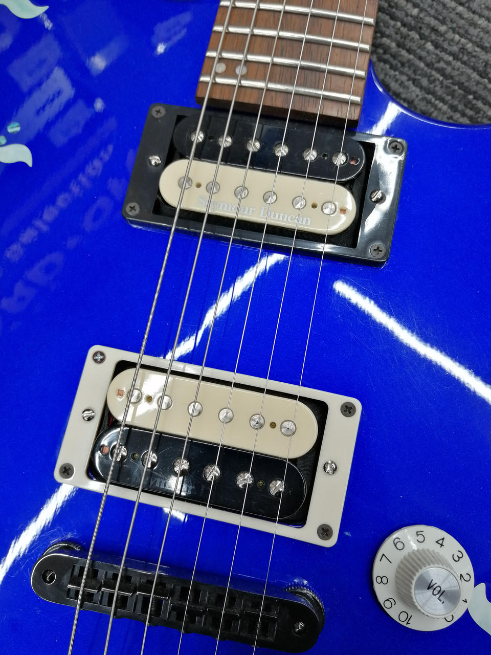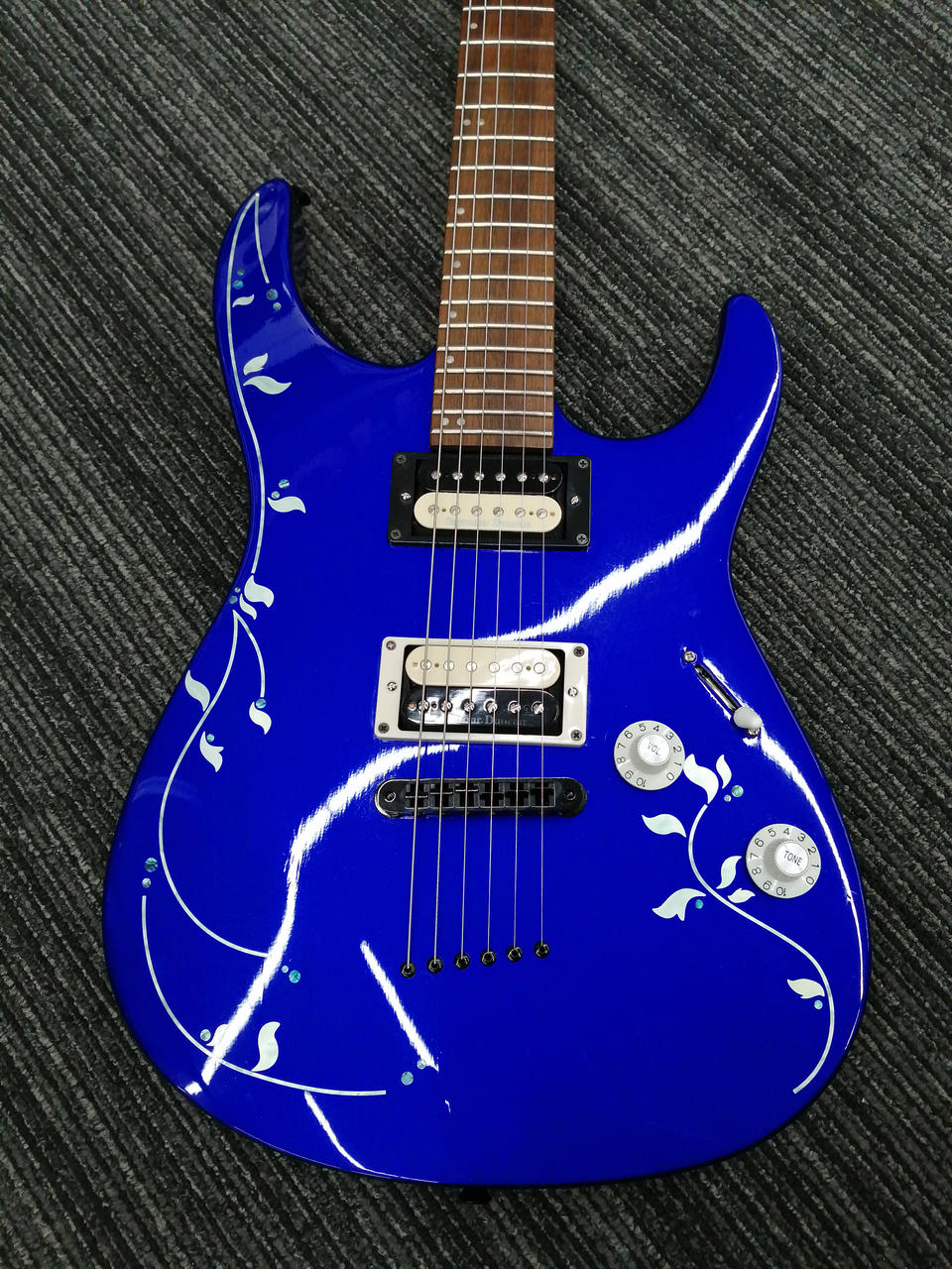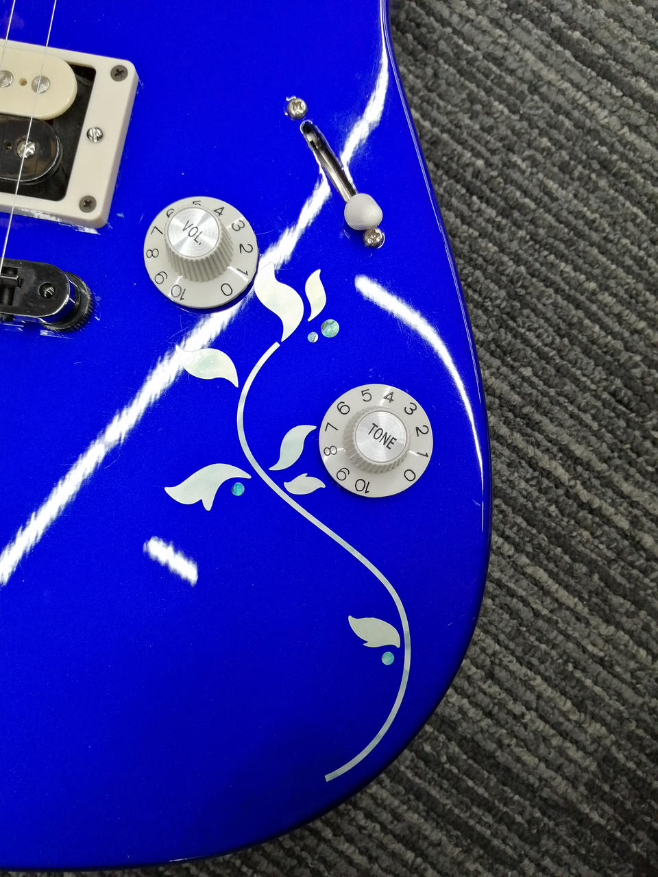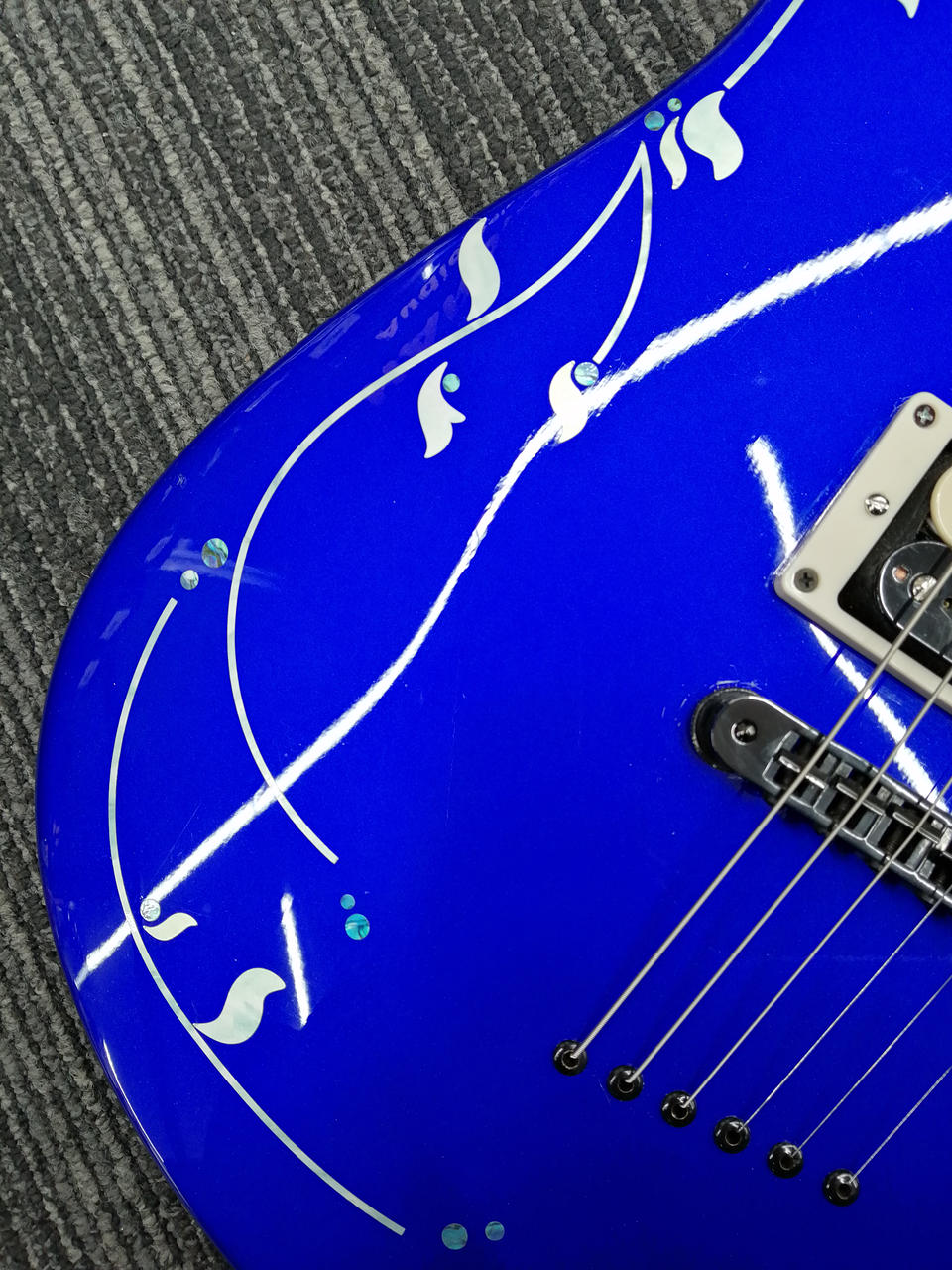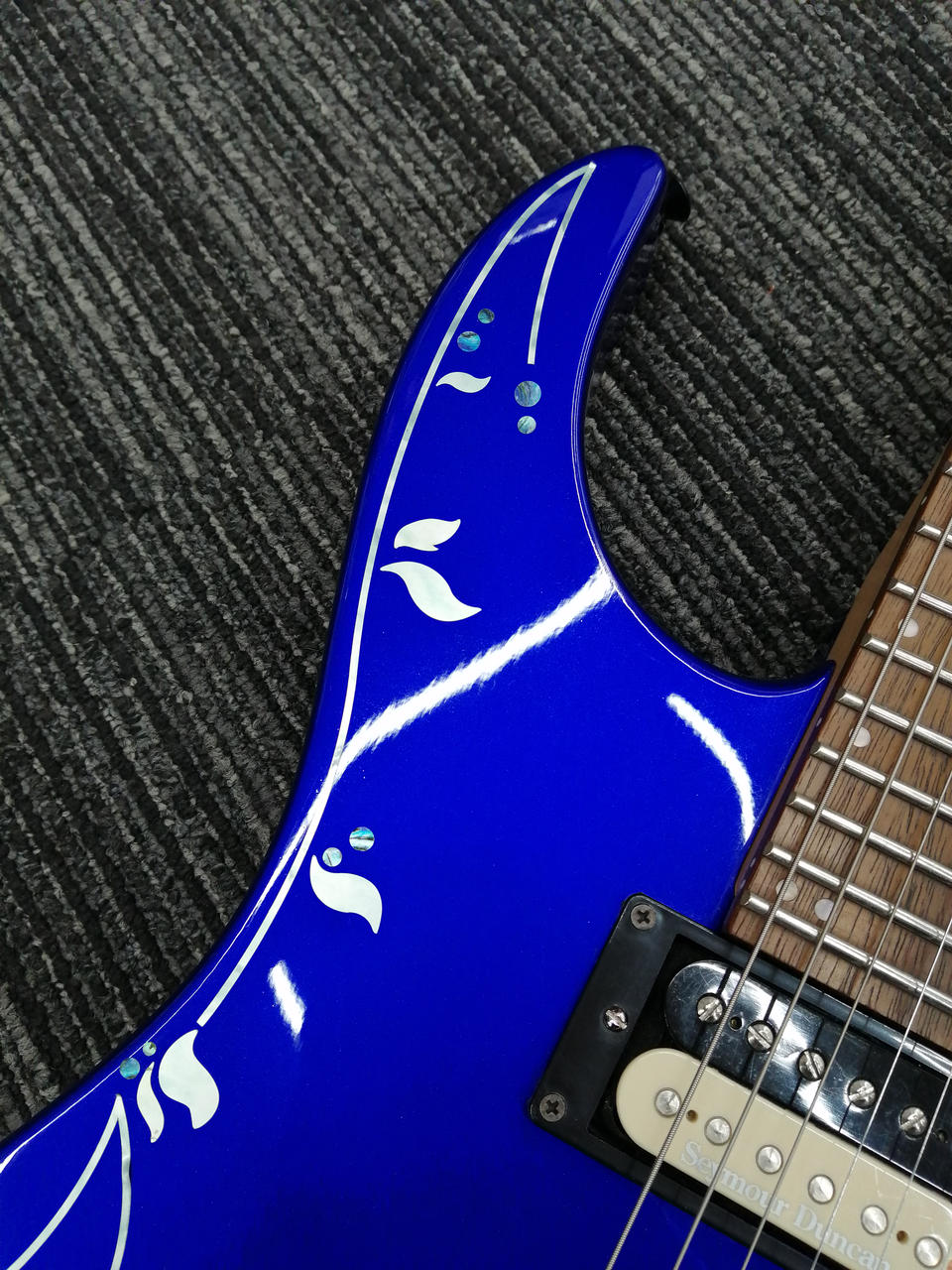 ボディの模様はインレイではなくシールが貼られています。 |