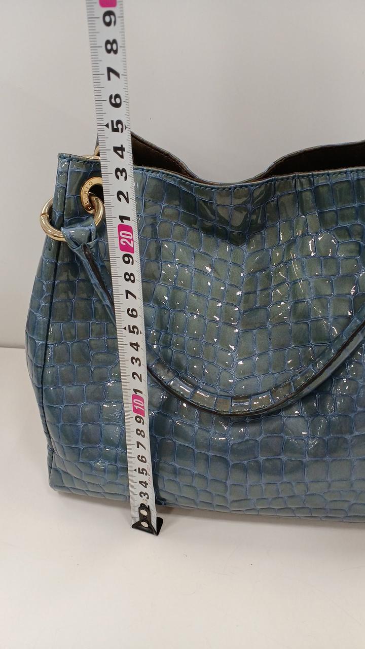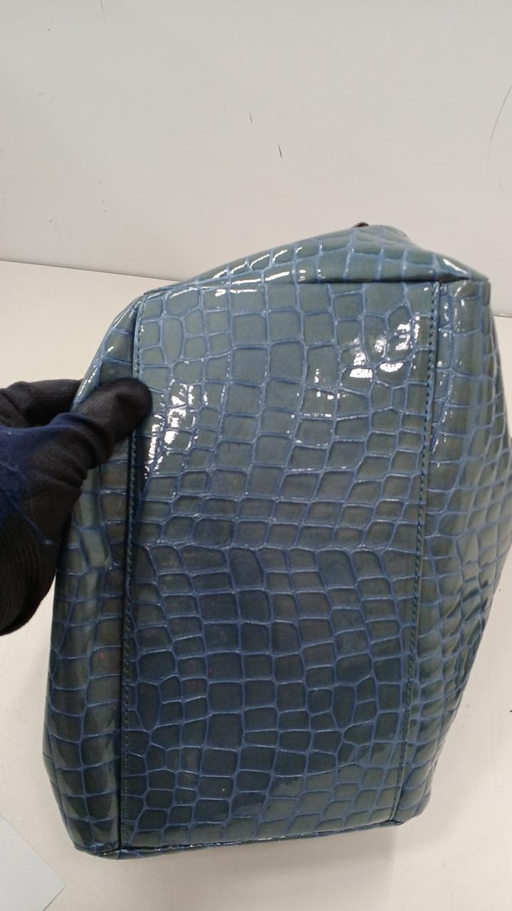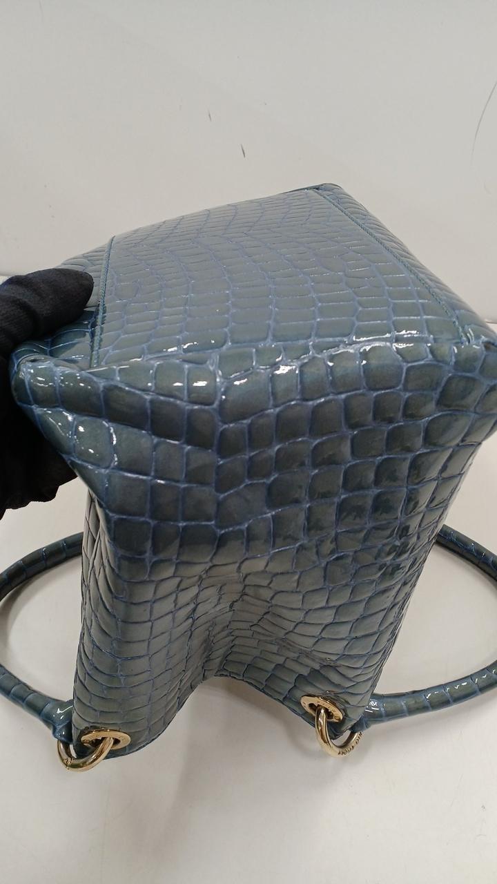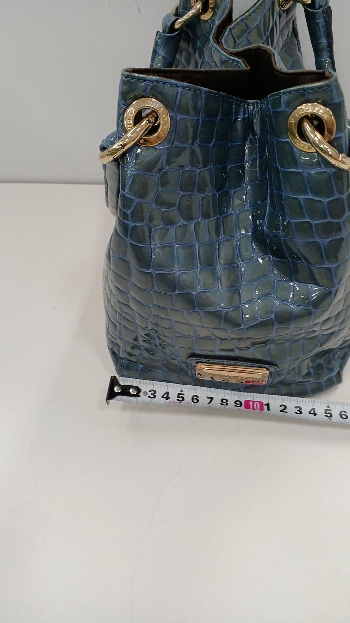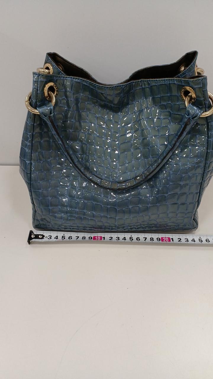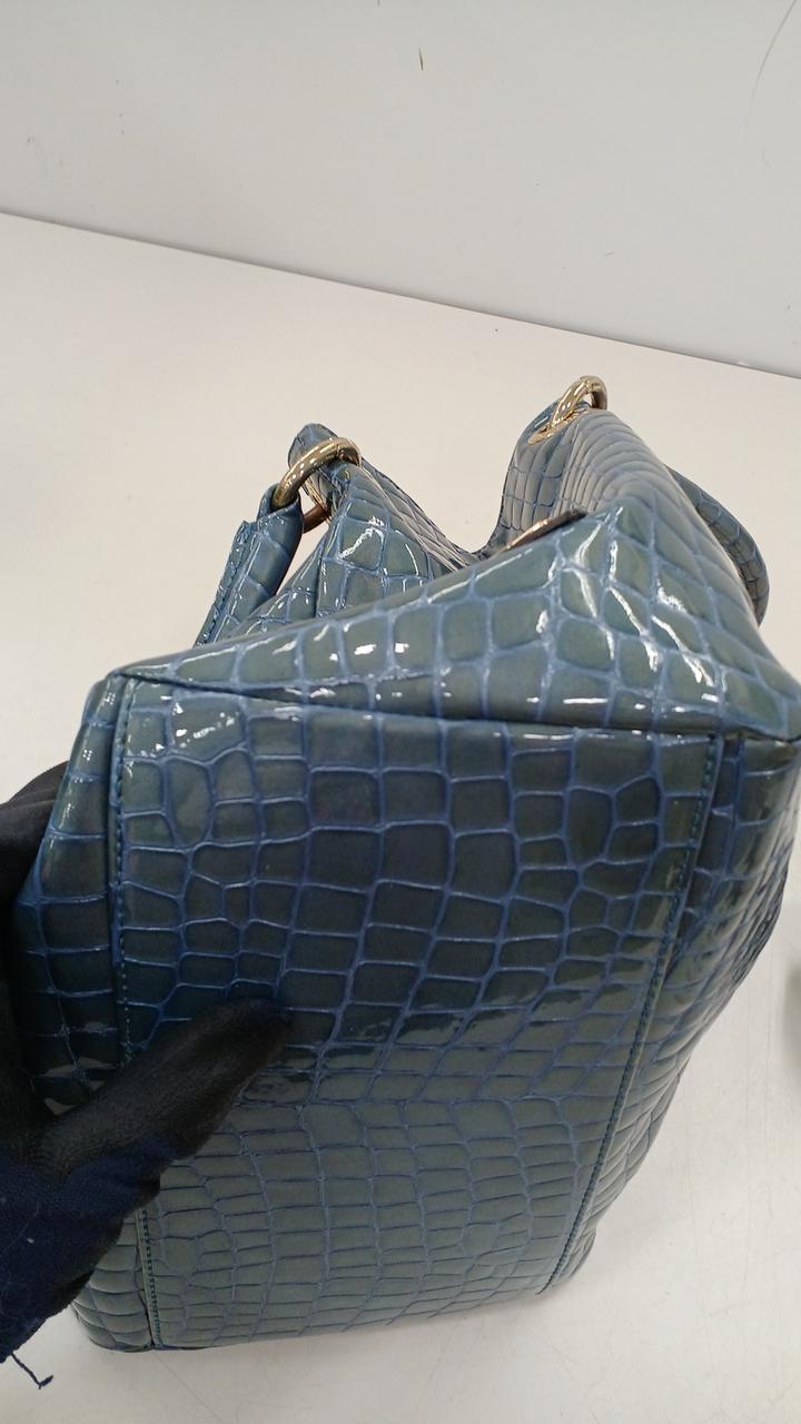 上品な光沢のある牛革のエナメル加工にクロコダイルの押し型が施されたバッグです♪
