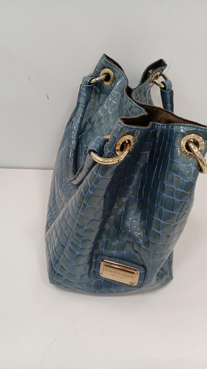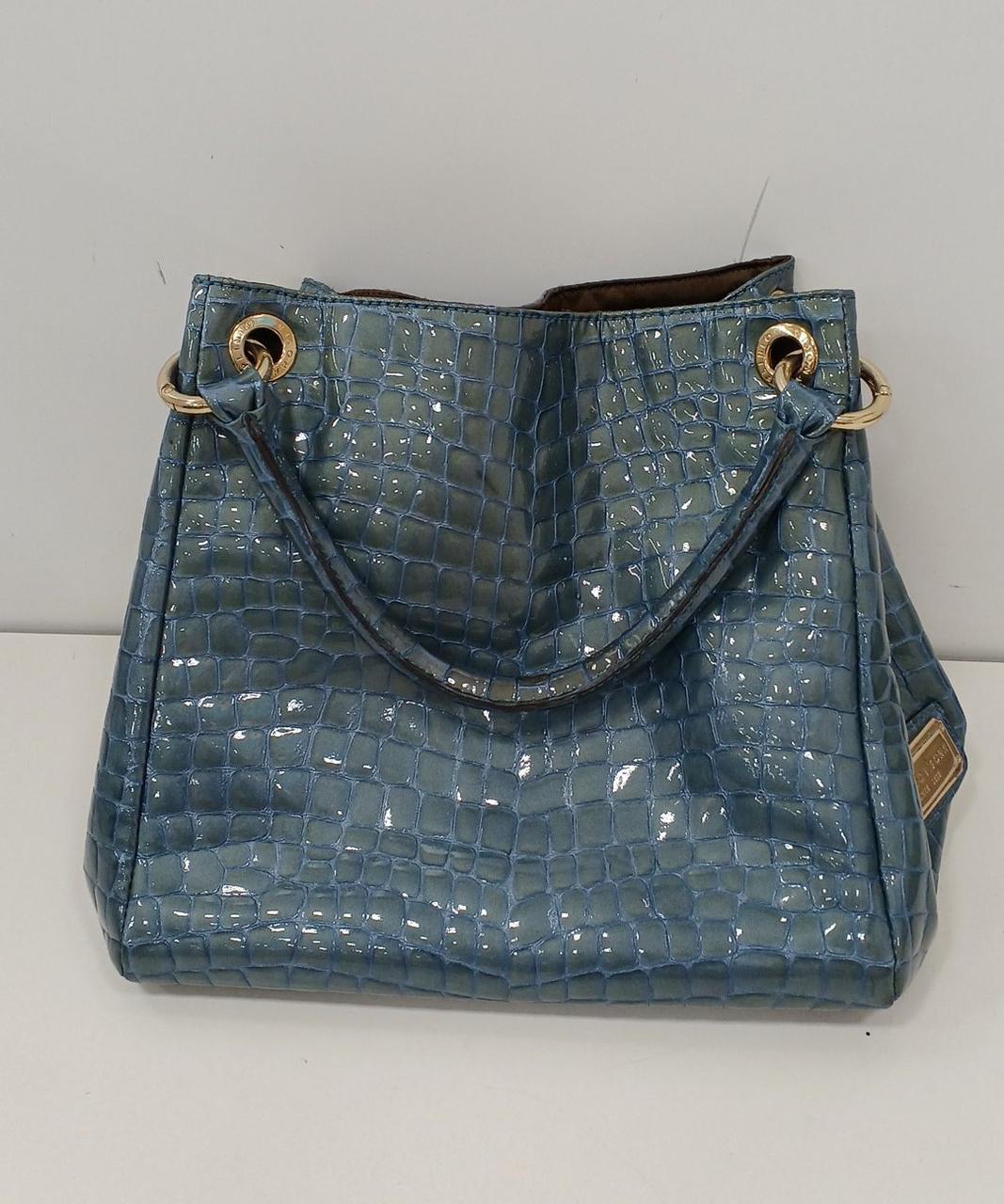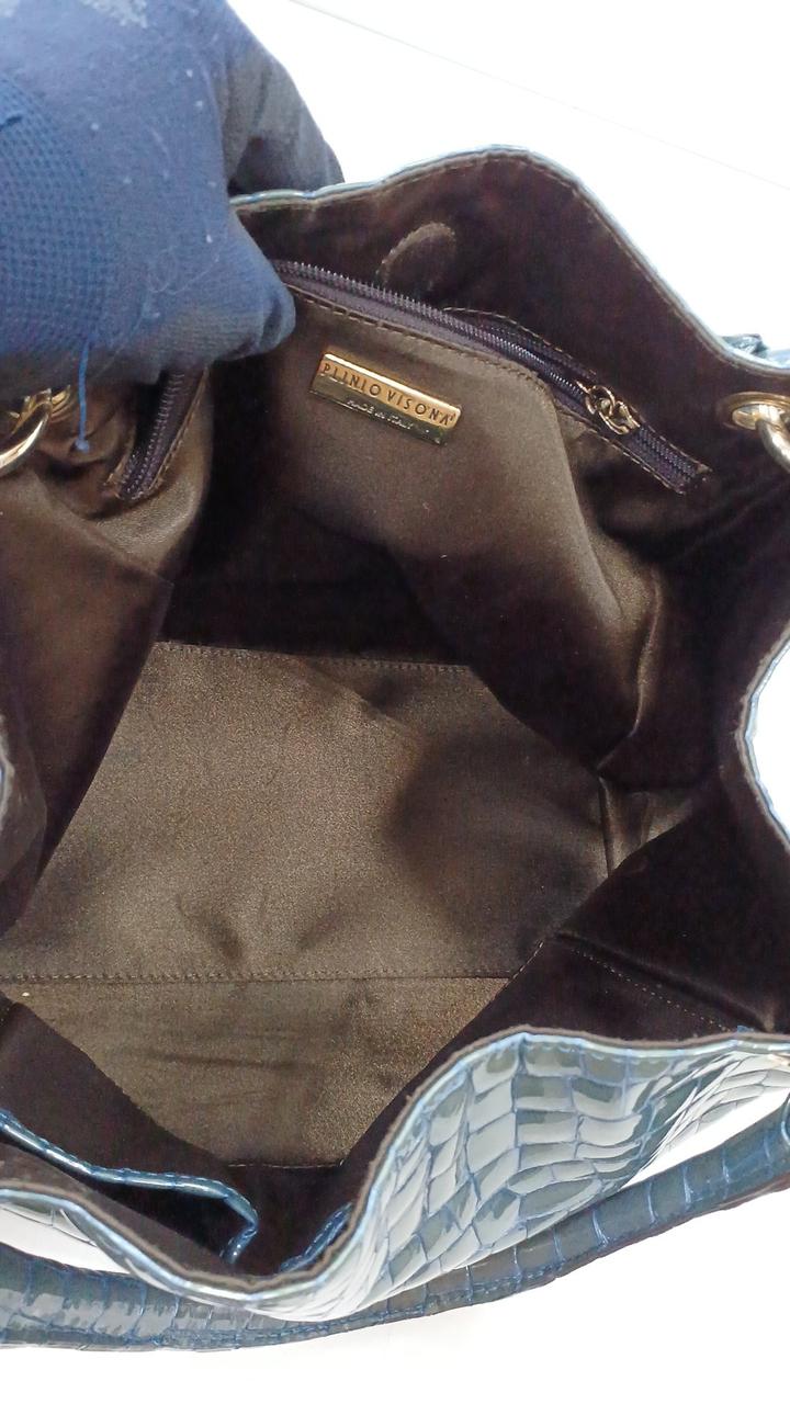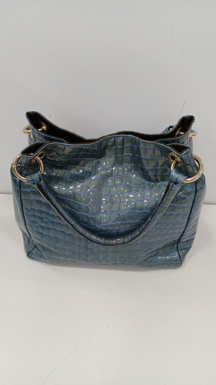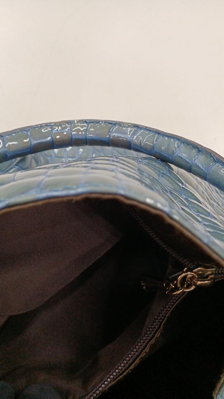 上品な光沢のある牛革のエナメル加工にクロコダイルの押し型が施されたバッグです♪