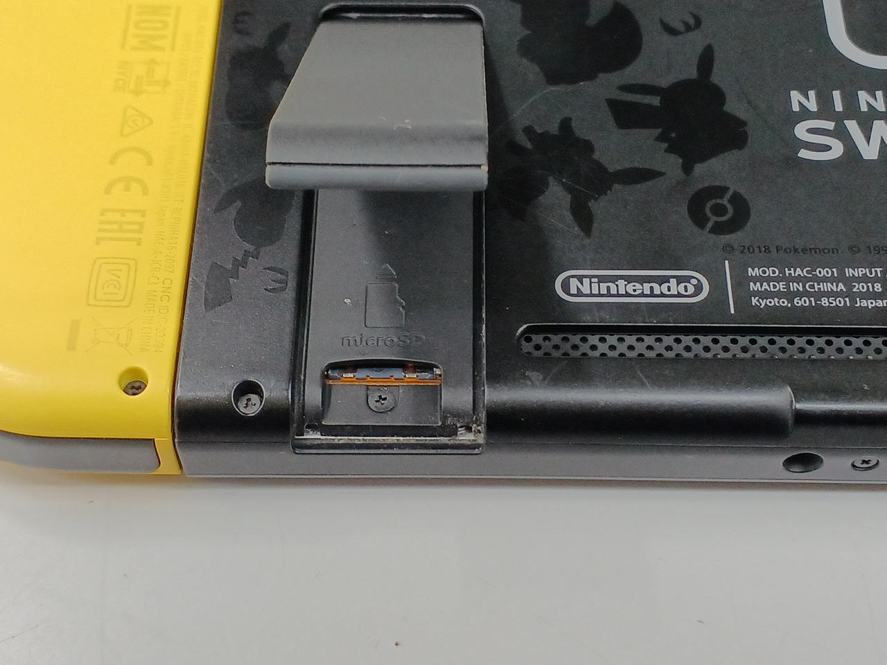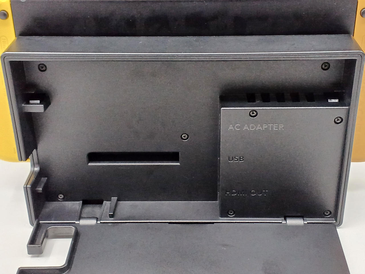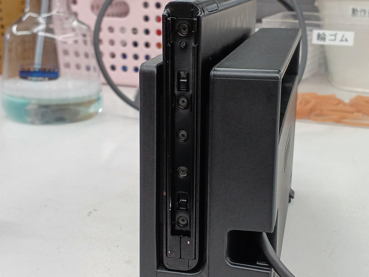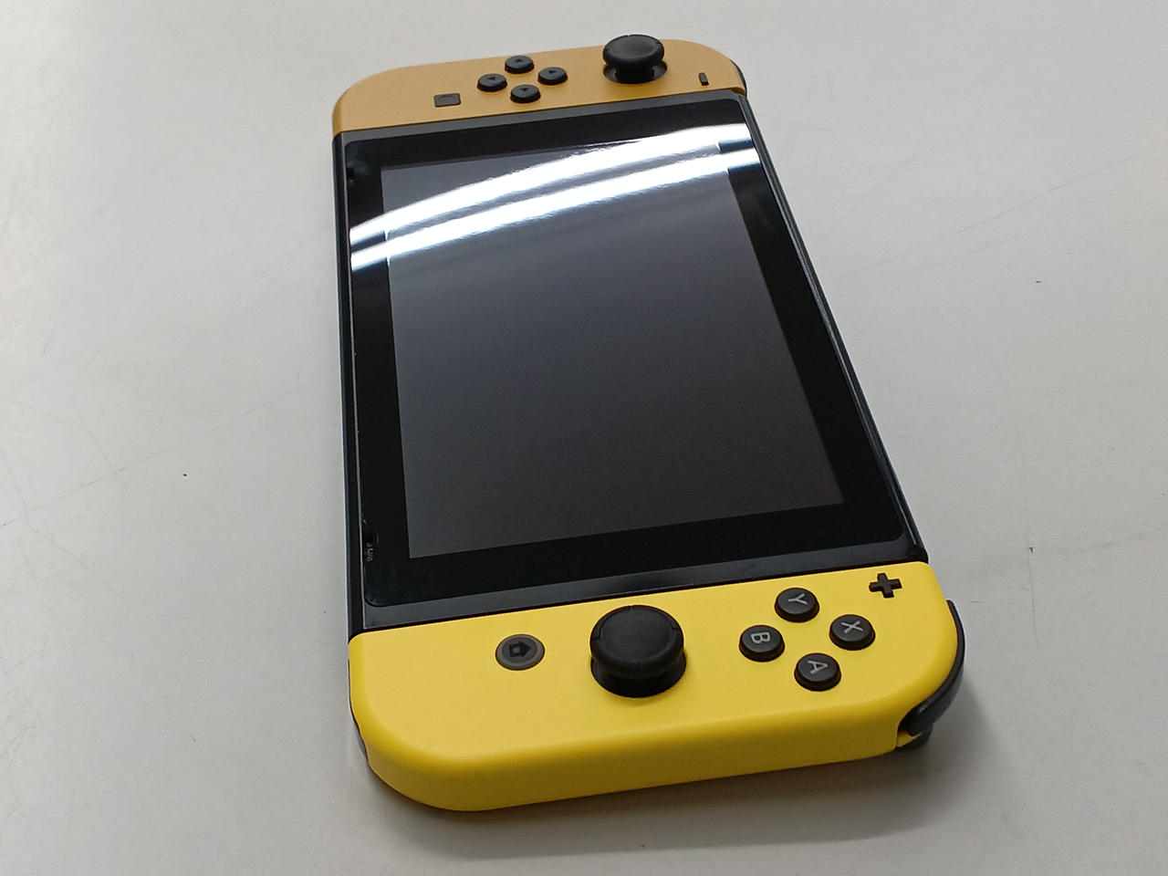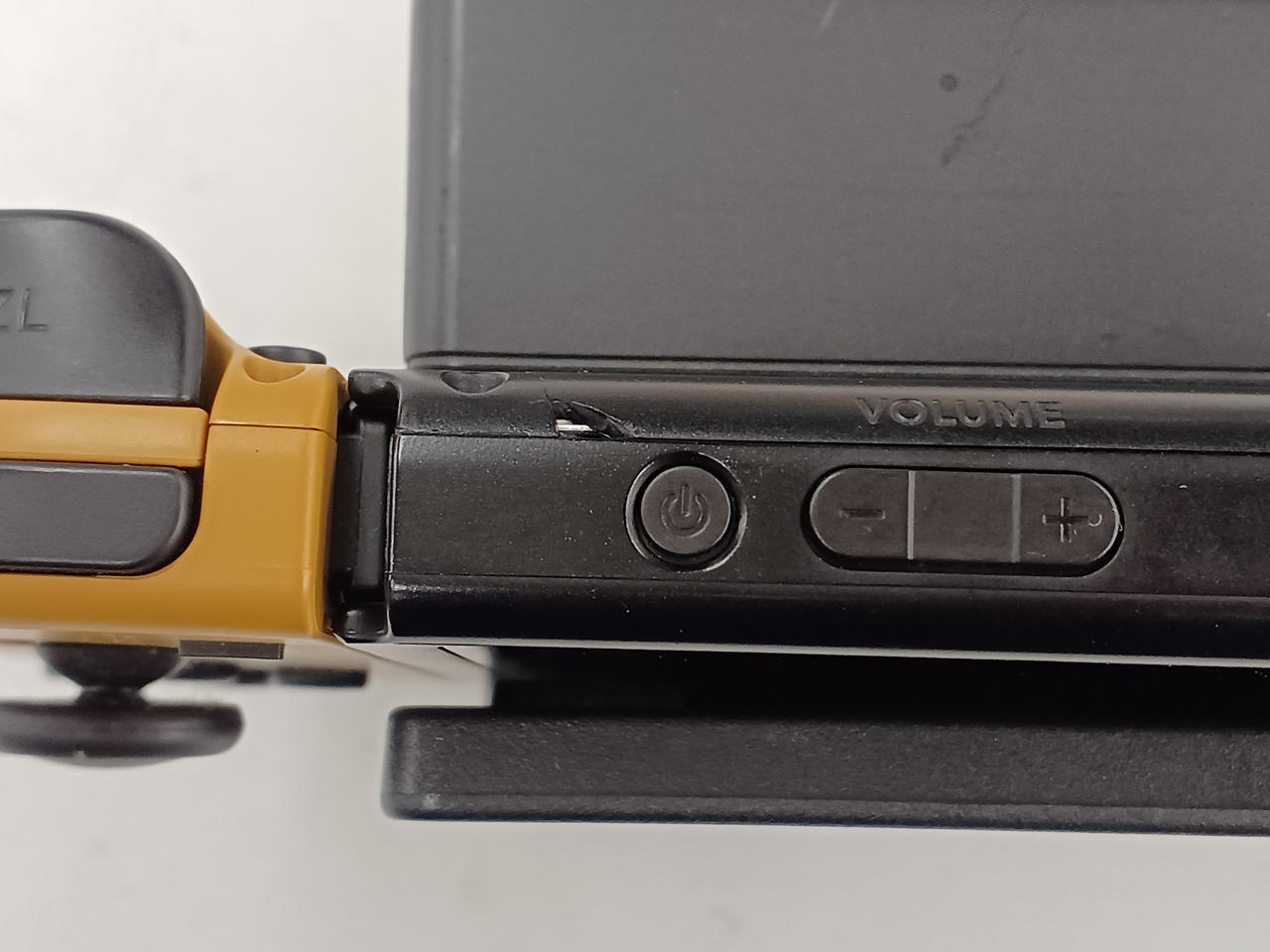 SWITCH本体の電源ボタン付近に欠損箇所あり。 |