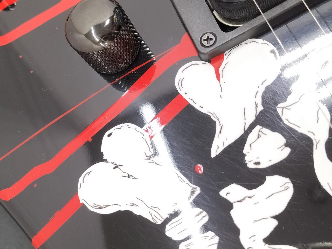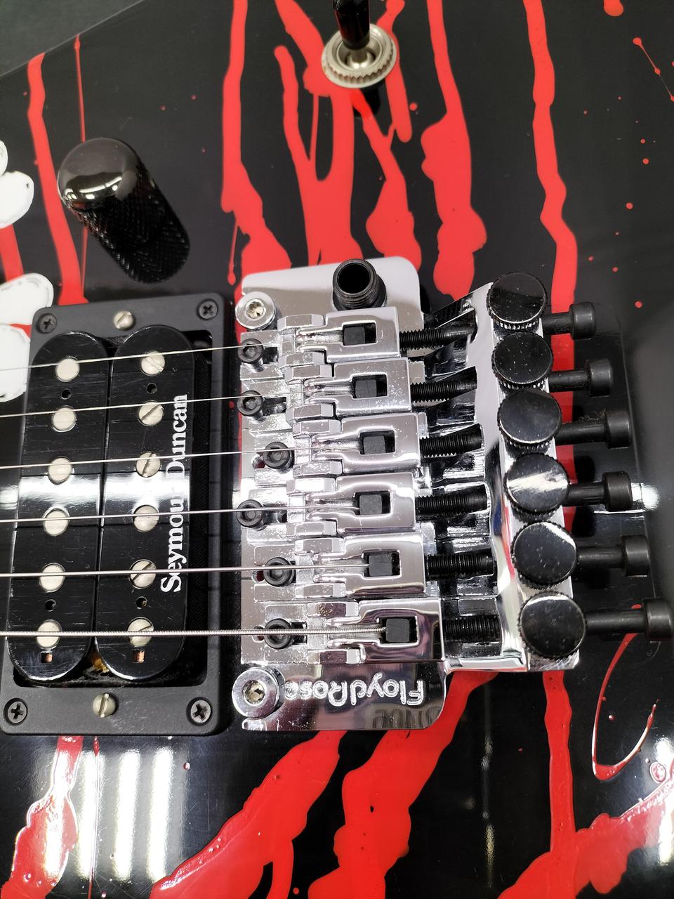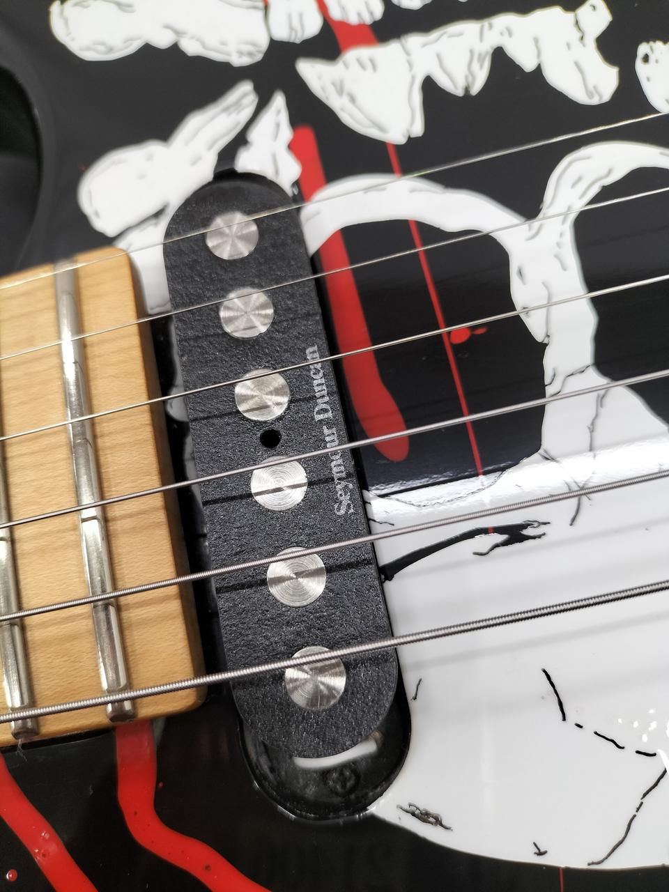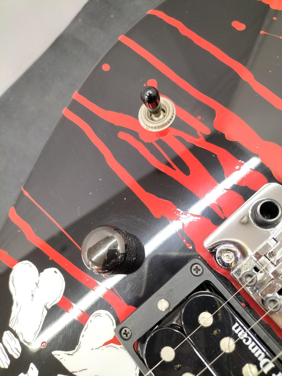 Warren DeMartini Signature Blood And Skull RATT - Wanted Man (Official Music Video)に出てくる初期ヘッド仕様。1ハムバッカータイプではなく1ハムバッカー・1シングル何れも Seymour Duncanピックアップ搭載。 |