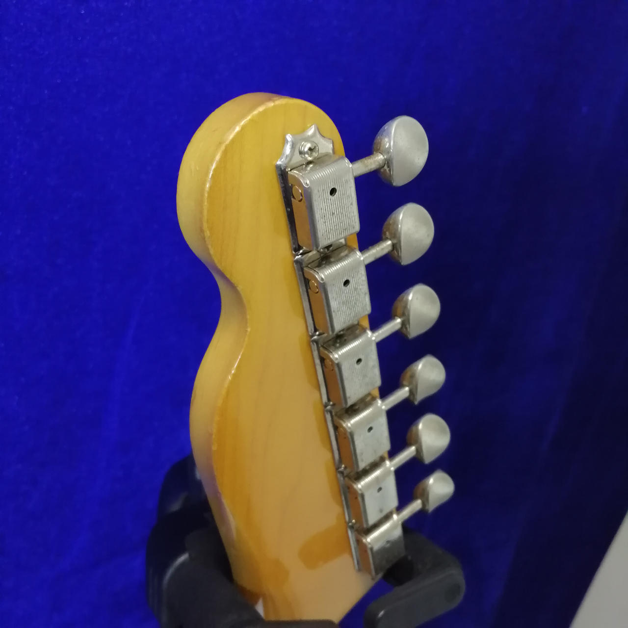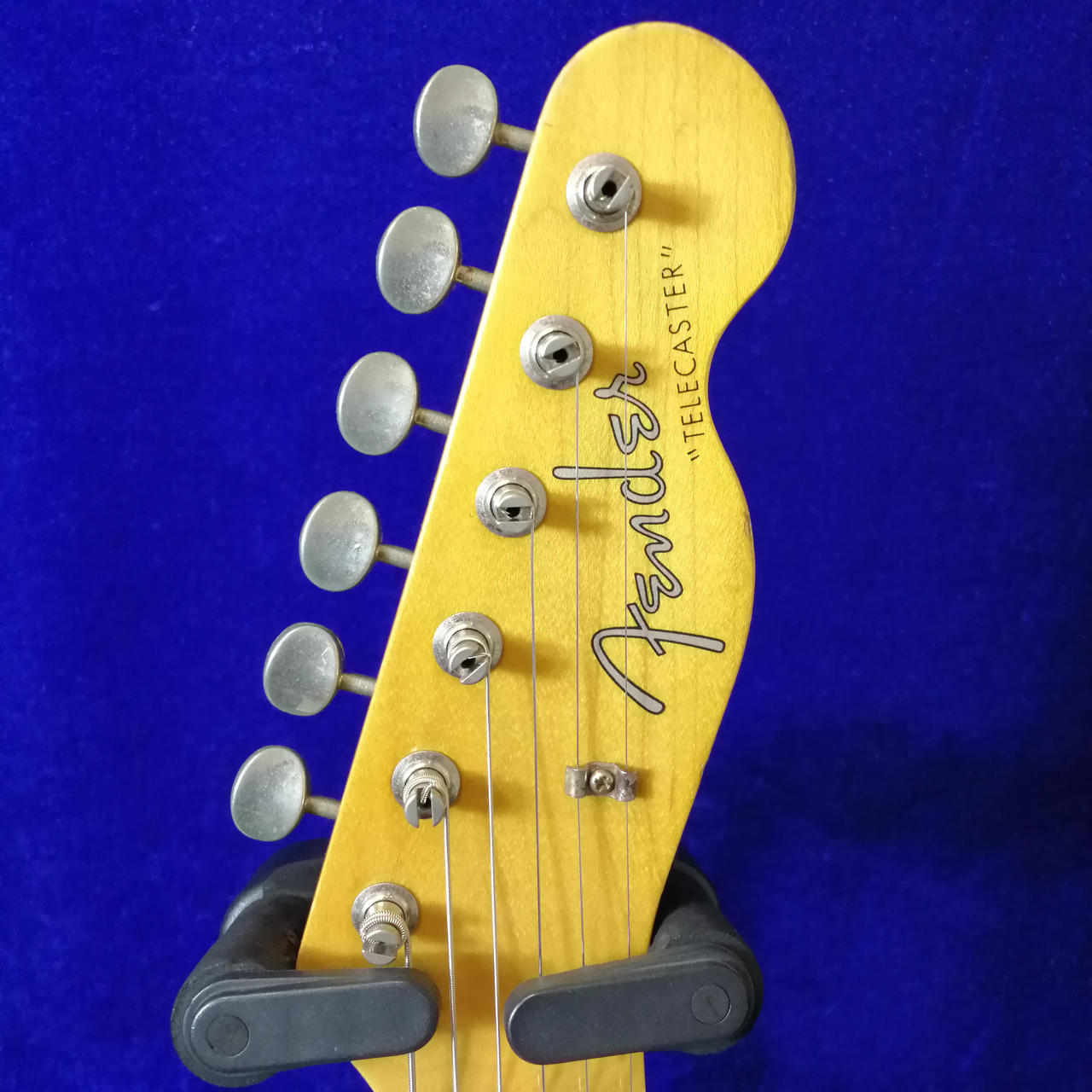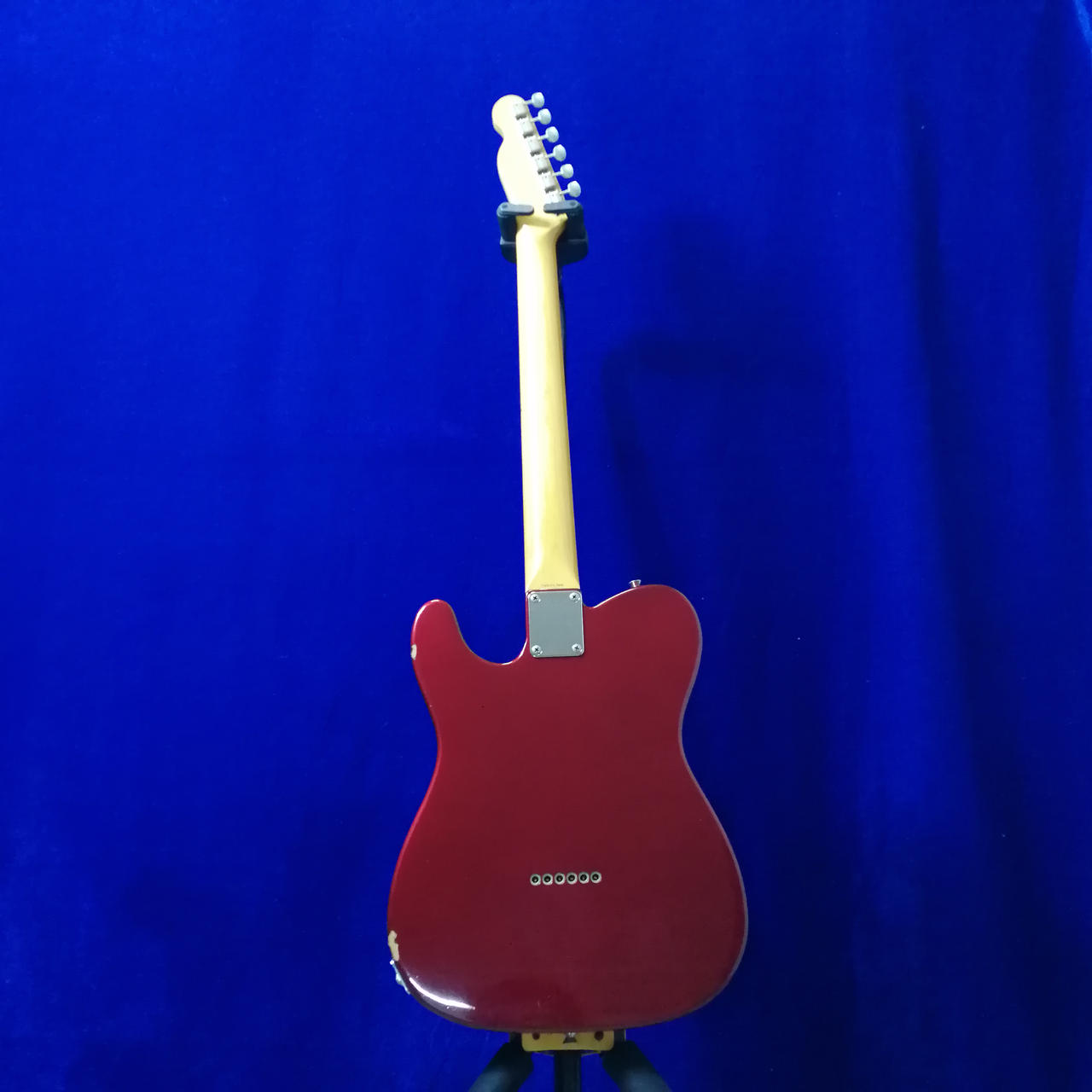 アルダーボディ、メイプルネック、ローズウッド指板、3連スパイラルサドル、USA Vintage Teleピックアップx2。 |