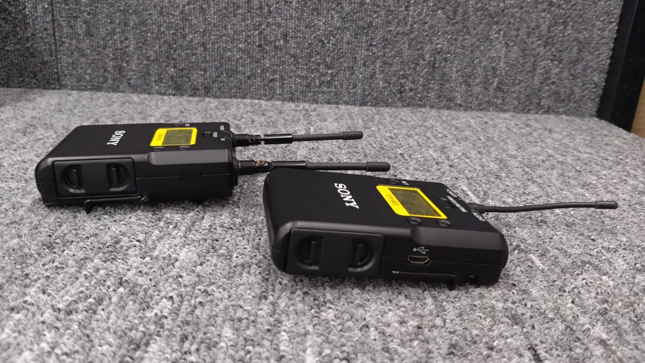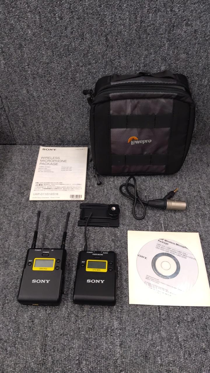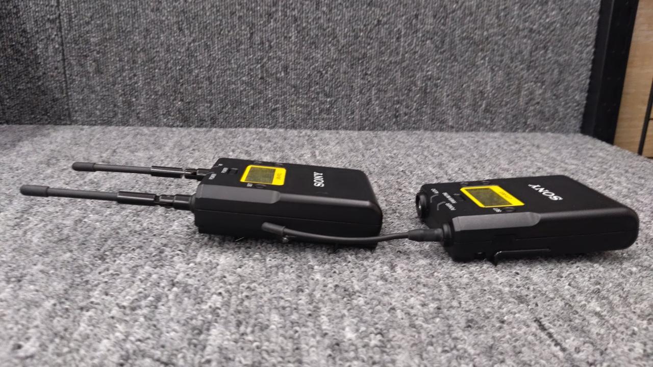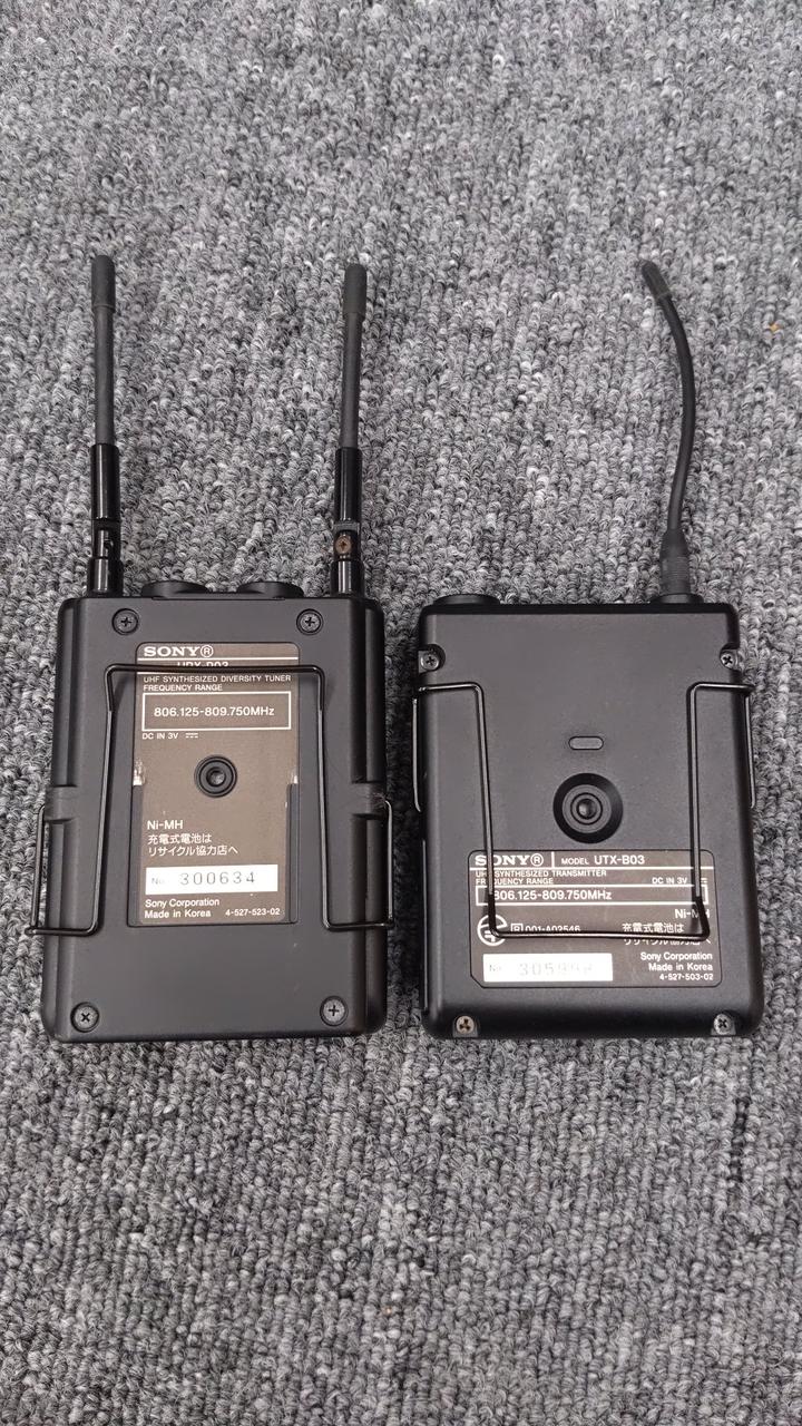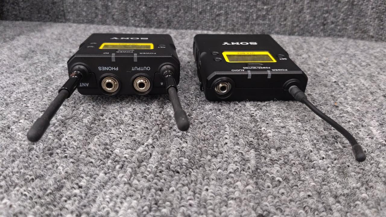 ボディパックトランスミッター、ポータブルダイバーシティチューナー、マウンター、ケーブル、取扱説明書、社外品バッグ。キズ・ヨゴレ。ケーブルは3.5mm側の被膜にワレあり。 |