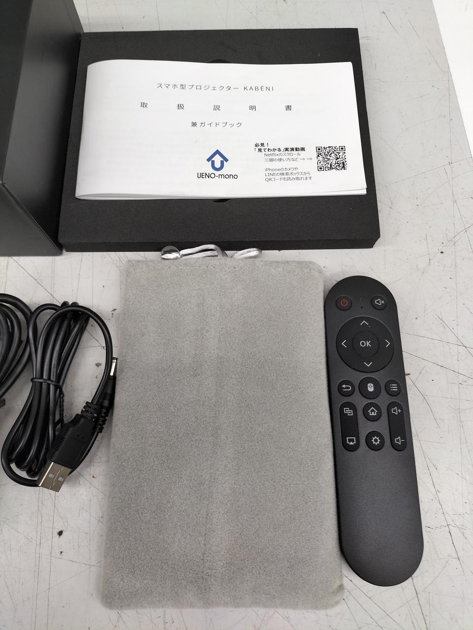 箱、説明書、接続ケーブル、AC、HDMI、付属部品あり。 |