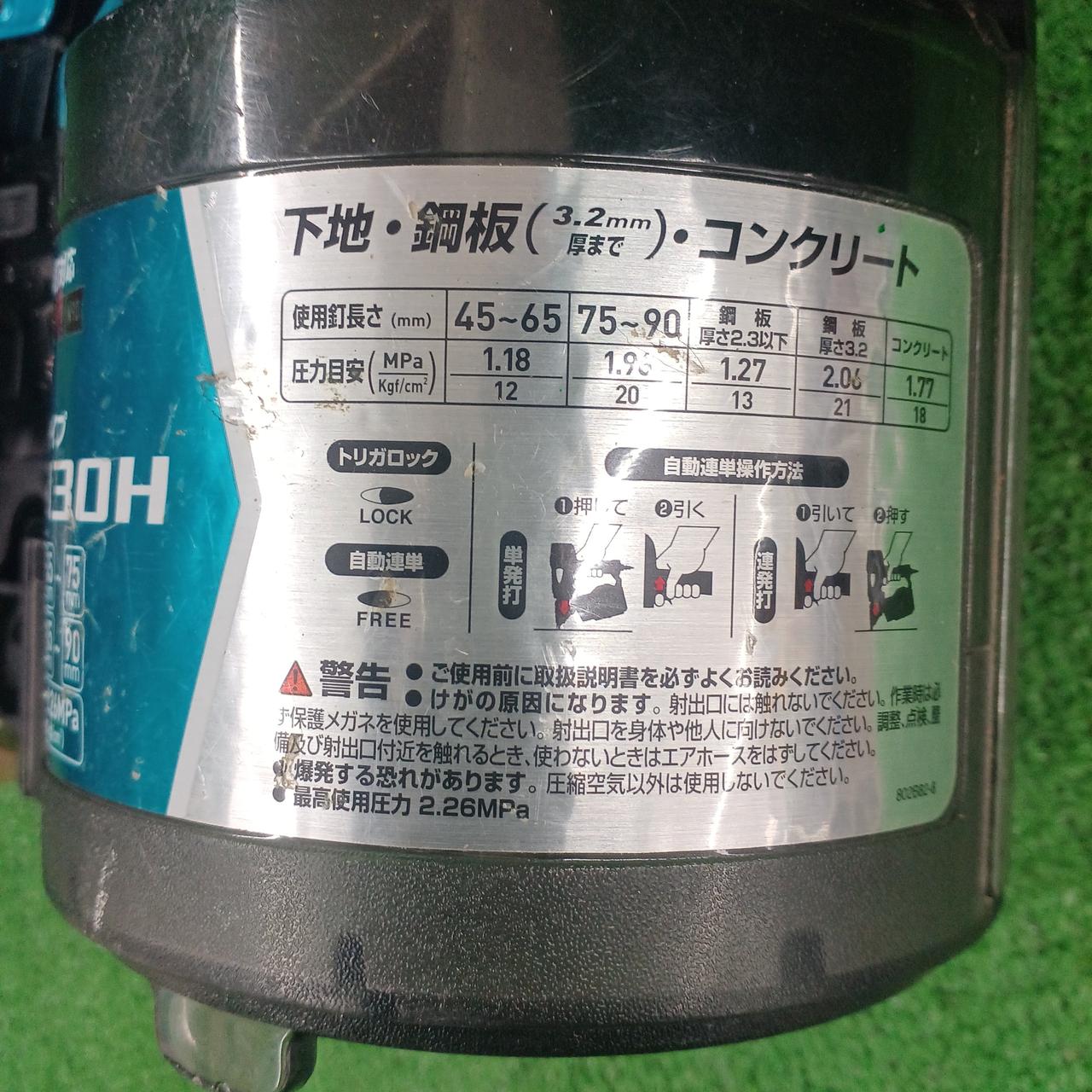 使用空気圧(MPa)[kgf/cm2]:1.18~2.26[12〜23] |