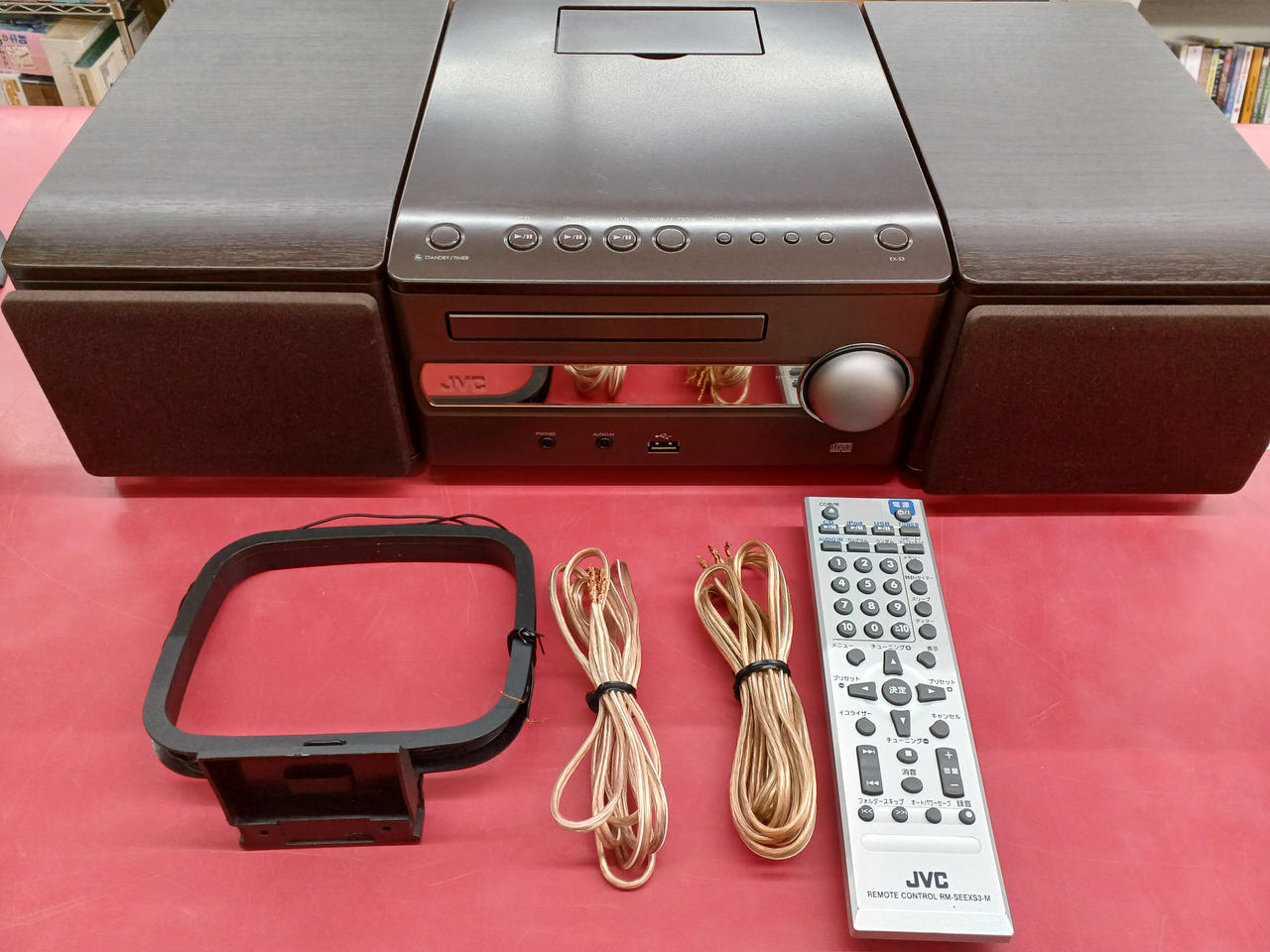 リモコン、スピーカーケーブル、アンテナ。 |