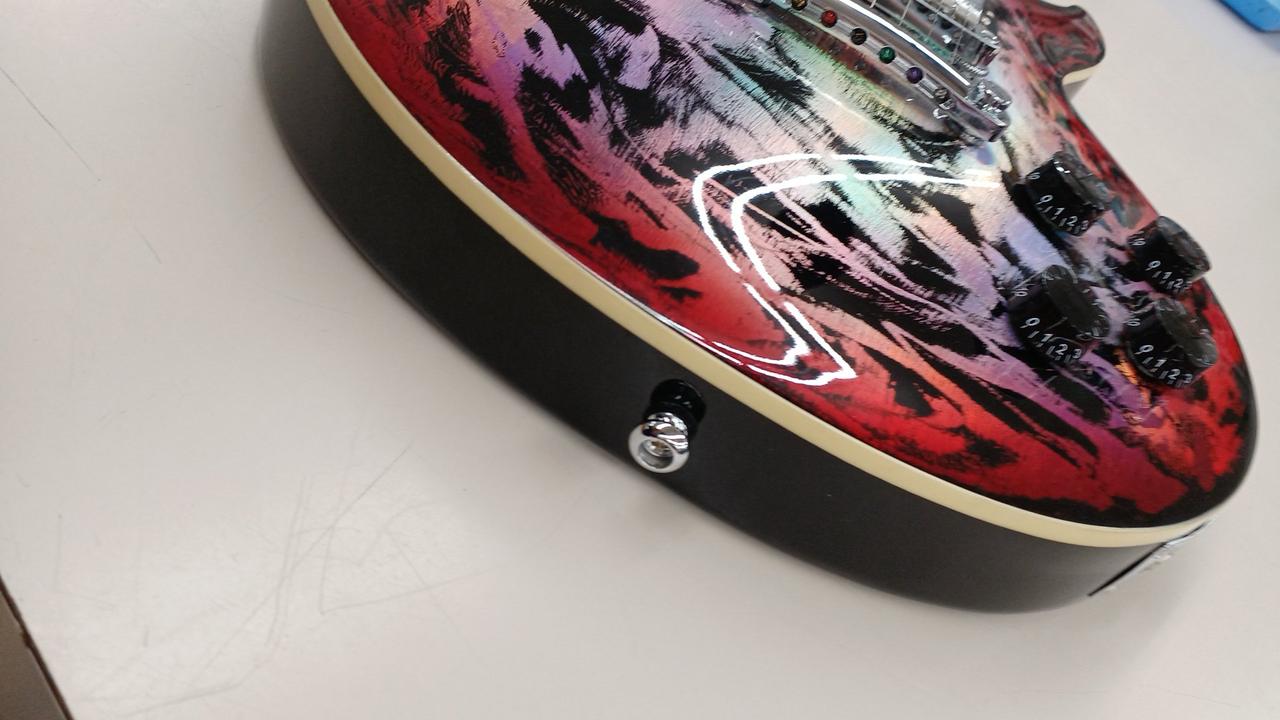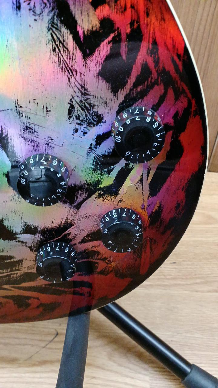 持つ角度や光の当たり方によって色が変わるホログラフィック効果 |